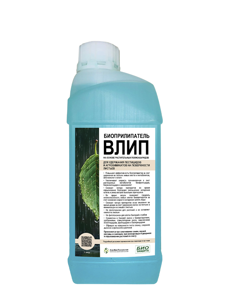 Биоприлипатель Влип на основе растительных полисахаридов. Влип образует на поверхности листа пленку, удерживая пестициды и агрохимикаты на поверхности листьев, при этом сохраняя дыхание и фотосинтез растения.
